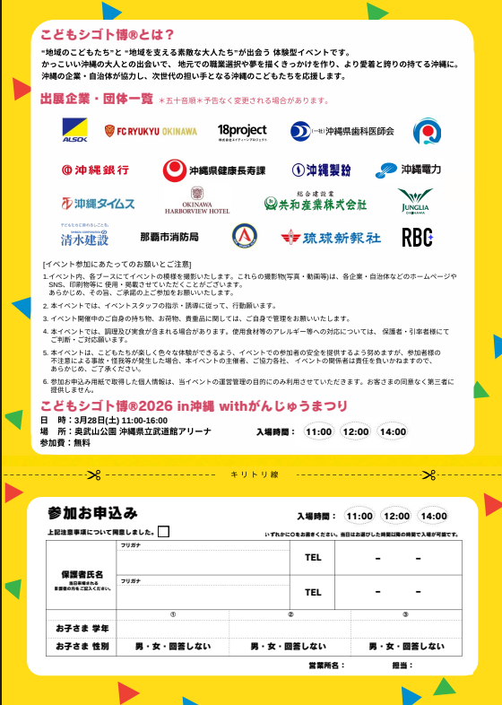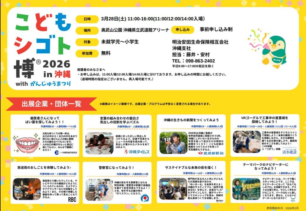 『こどもシゴト博2026 in 沖縄 with がんじゅうまつり』に出展いたします。