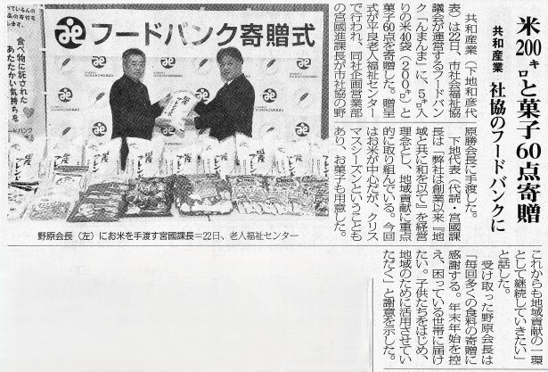 令和7年12月22日(月)に社会福祉法人 宮古島市社会福祉協議会(フードバンク んまんま)へ食料品の寄贈しました。